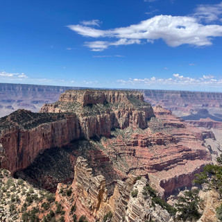 We, without knowing it, couldn't have choreographed the completion of our Grand Canyon adventures any more perfectly!!! I am so glad we spent the time we did in the South Rim BEFORE checking out the North Rim. The North Rim is about a 4 & 1/2 hr drive from the South Rim and although you're looking into the same Canyon it is an amazingly different experience! At the South Rim you can't escape the grandeur and colors and expansiveness of the canyons. However, the North Rim is a little bit more of an intimate experience...You are a little closer to it, or perhaps a little more IN it, so you are able to appreciate the architecture and texture of the Canyons all the more.
