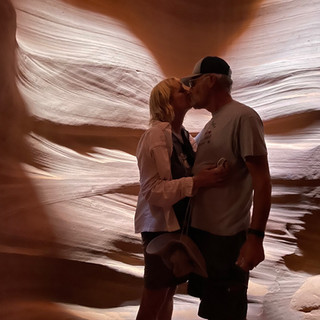 So, aside from THAT debacle - Antelope Canyon was an amazing treat. Words don't do it justice, so I'll just have to let the photos do the talking. First of all - I hope you noticed on this first/cover photo for this post that you are looking at "an antelope" in the formation! There is also a heart included here in the pics - not to mention the cool photo Roger, our guide, took of Karl and I kissing inside a heart! Our guide was awesome with helping us with photos and although the tour was a bit hurried he made sure we knew how/where to get the best pictures.